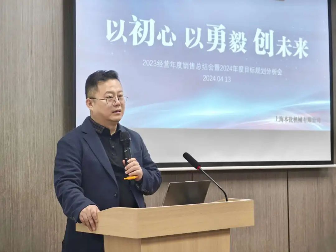 踔厉奋发守初心,勇毅前行向未来。2024年4月13日,本优机械2023经营年度(2023.4.1--2024.3.31)销售总结会暨2024年度目标规划分析会在徐州隆重召开,董事长胡金保携销售中心全体销售人员参会。此次盛会不仅是对公司过去一年成绩的总结表彰,更是对2024年业务拓展与服务升级的深度布局。
