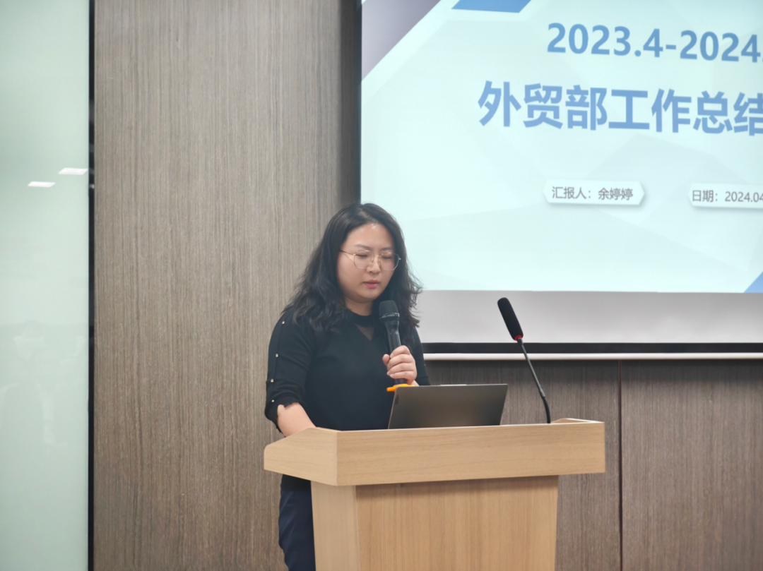 外贸事业部总监余婷婷强调了今年的工作重点。在渠道建设及内部管理工作要加强,积极参加海外展会和行业交流,定期邀约海外客户来访,增加与客户面对面交流的机会,缩短服务周期,为客户和企业建立更好的桥梁。