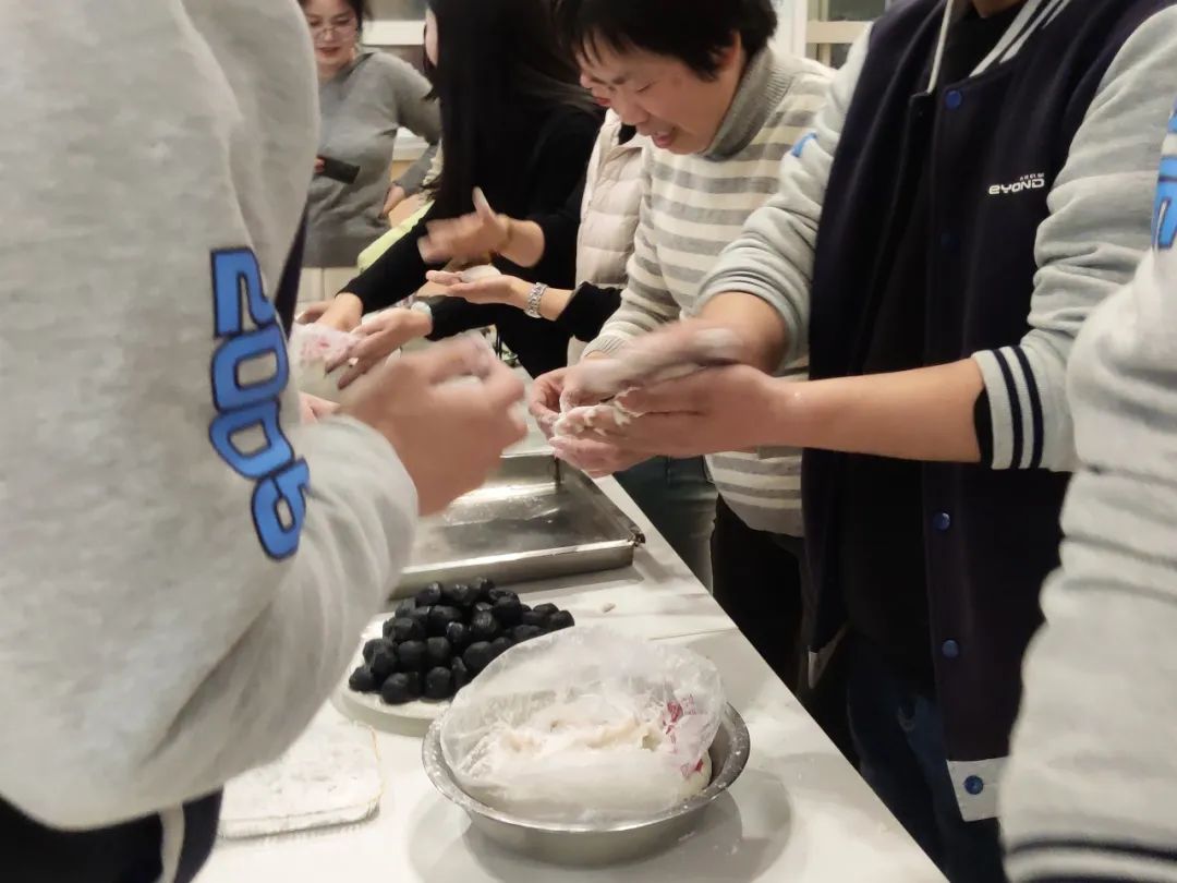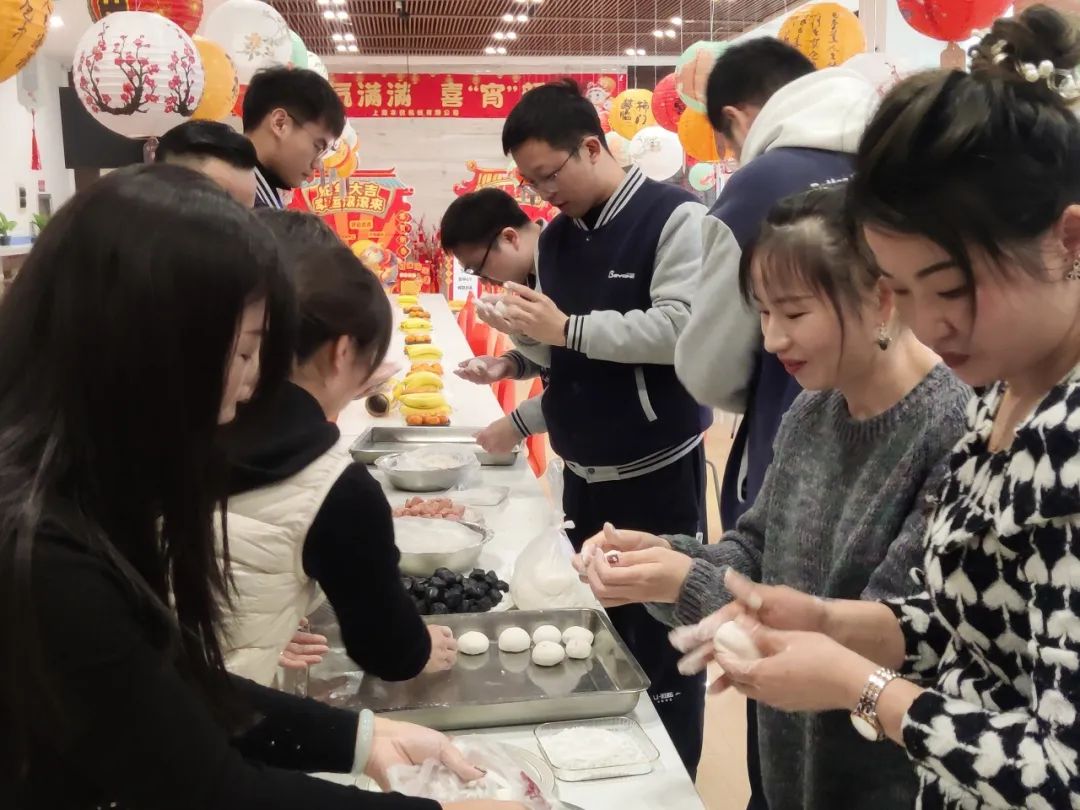 加水,和面、揉面、包馅,揉成型,一个个白白胖胖的元宵就出现在全体员工眼前。胖乎乎的大汤圆,吃了就元气满满;小巧玲珑的小汤圆,胜在可爱又喜庆。