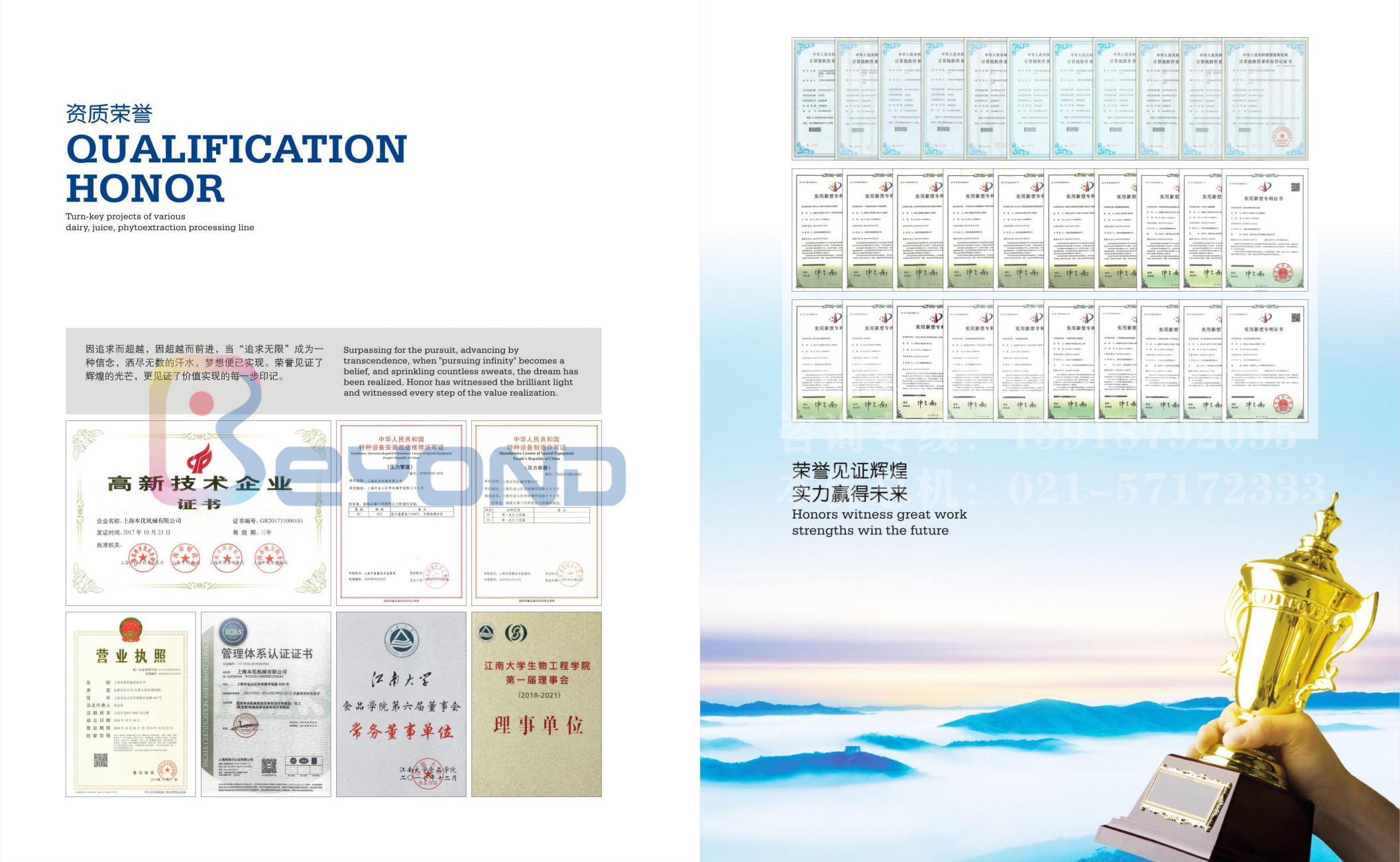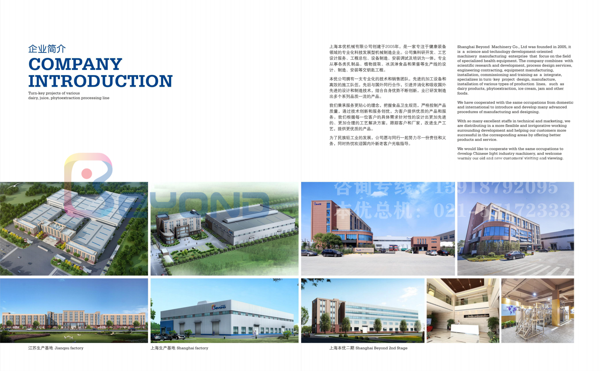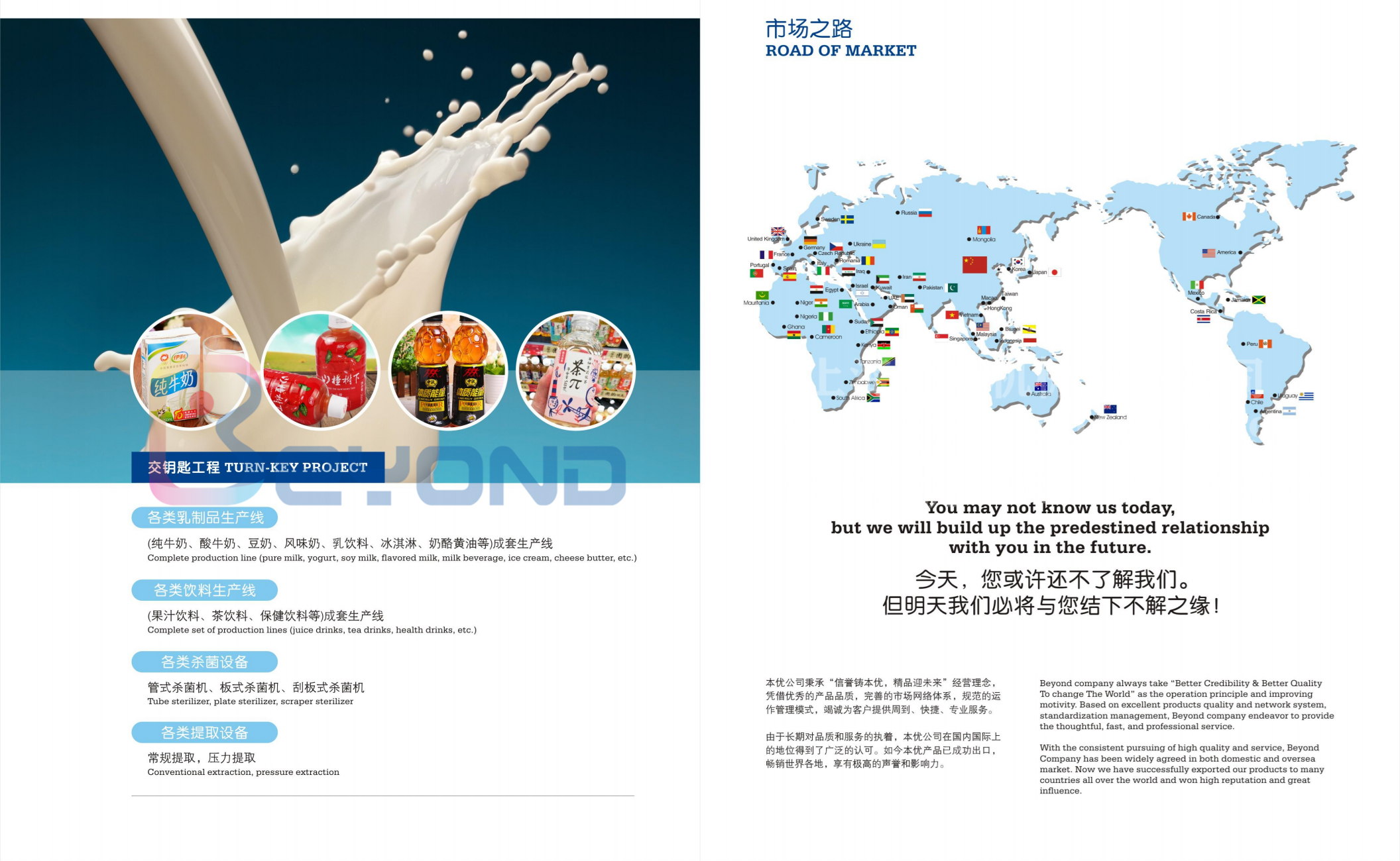 从事果蔬前处理、乳制品、饮料、果酱、纯净水、肉骨 加工、蛋品加工、宠物食品、特医食品、酒类加工等以及生物 制药、精细化工等生产线的设计、制造、安装等交钥匙工程。